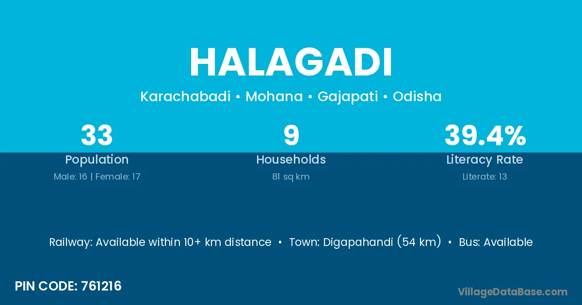 Digapahandi (54 km) is the nearest town to Halagadi village for major economic activities and is located approximately 54 km away.