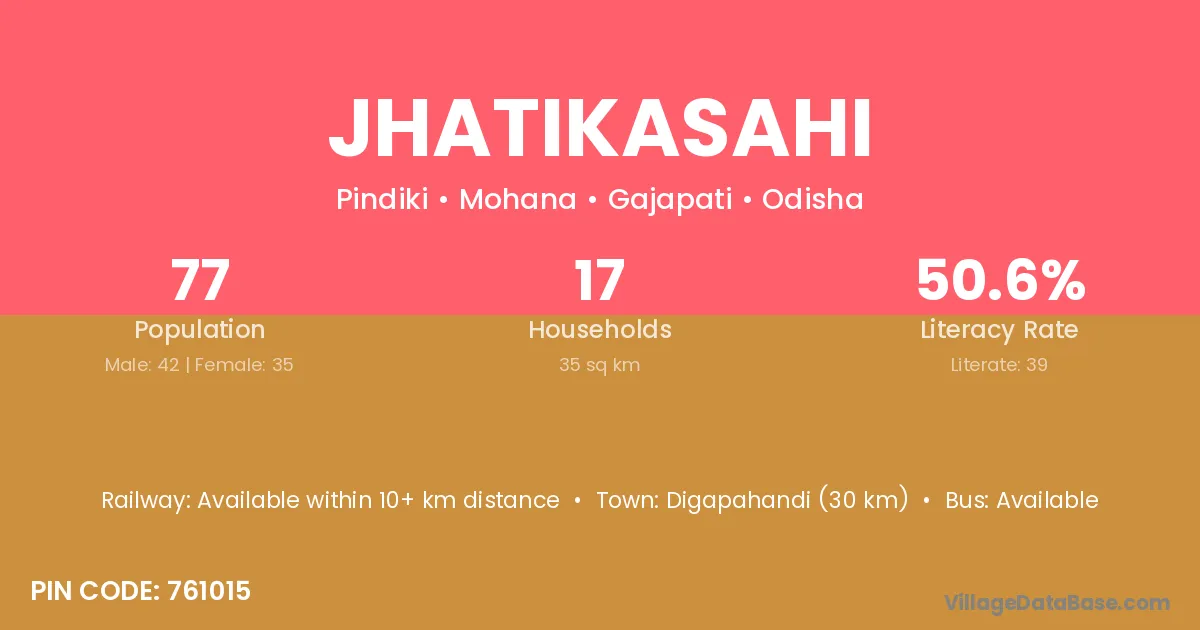 Jhatikasahi village has a total population of 77 people, of which 42 are males and 35 are females.