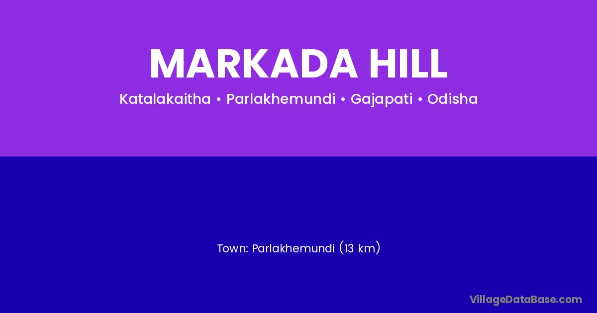 Parlakhemundi (13 km) is the nearest town to Markada Hill village for major economic activities and is located approximately 13 km away.