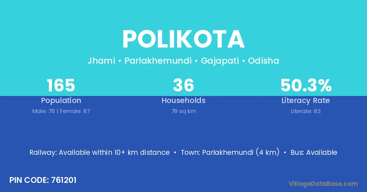 Parlakhemundi (4 km) is the nearest town to Polikota village for major economic activities and is located approximately 4 km away.