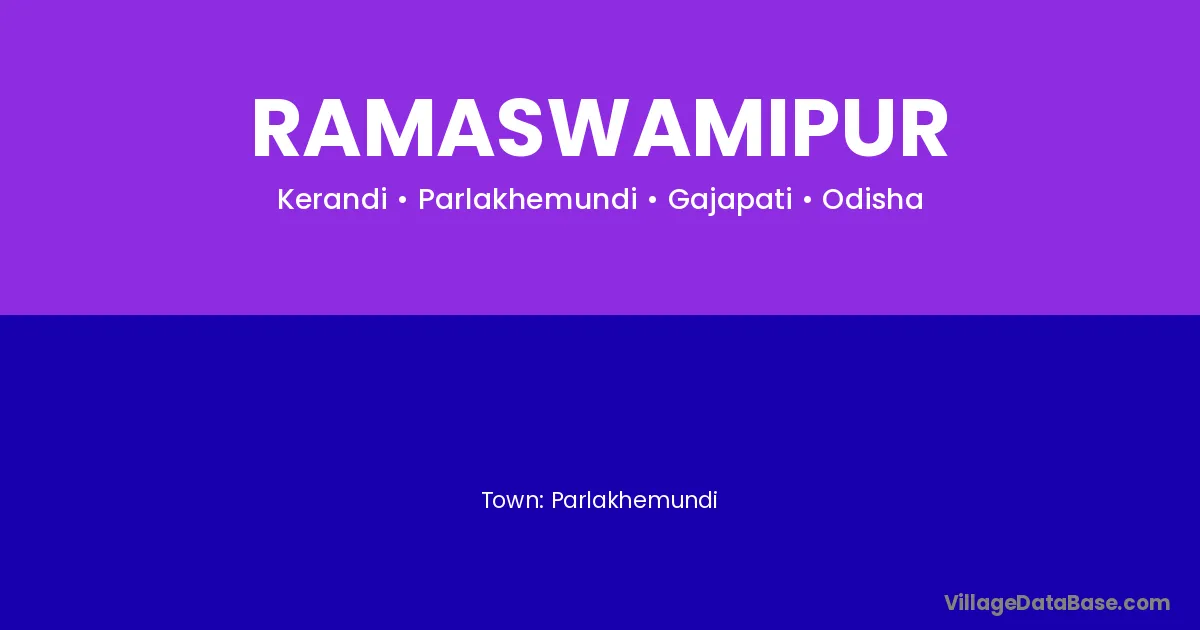 Parlakhemundi is the nearest town to Ramaswamipur village for major economic activities