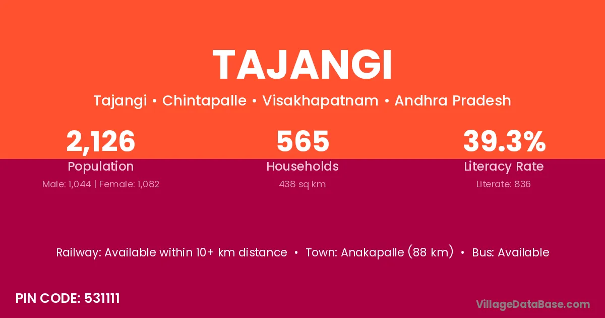Parlakhemundi (14 km) is the nearest town to Tajangi village for major economic activities and is located approximately 14 km away.