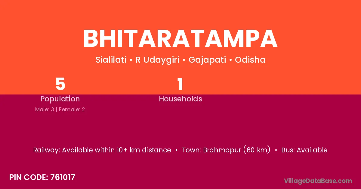 Bhitaratampa village has a total population of 5 people, of which 3 are males and 2 are females.