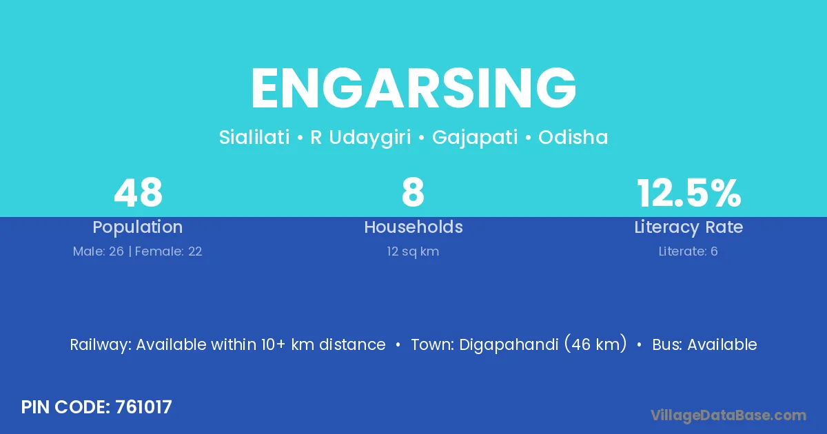 Digapahandi (46 km) is the nearest town to Engarsing village for major economic activities and is located approximately 46 km away.