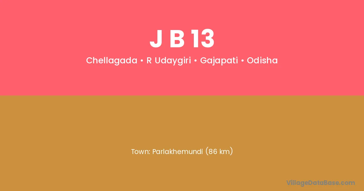 Parlakhemundi (86 km) is the nearest town to J B 13 village for major economic activities and is located approximately 86 km away.