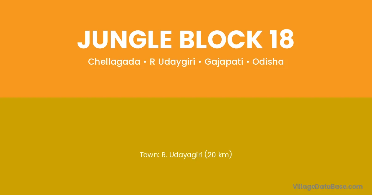 R. Udayagiri (20 km) is the nearest town to Jungle Block 18 village for major economic activities and is located approximately 20 km away.