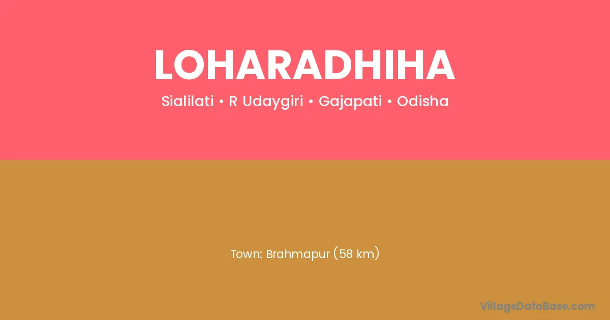 Brahmapur (58 km) is the nearest town to Loharadhiha village for major economic activities and is located approximately 58 km away.