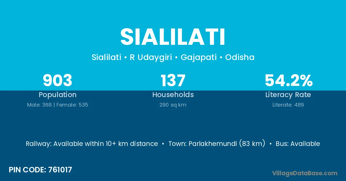 Parlakhemundi (83 km) is the nearest town to Sialilati village for major economic activities and is located approximately 83 km away.