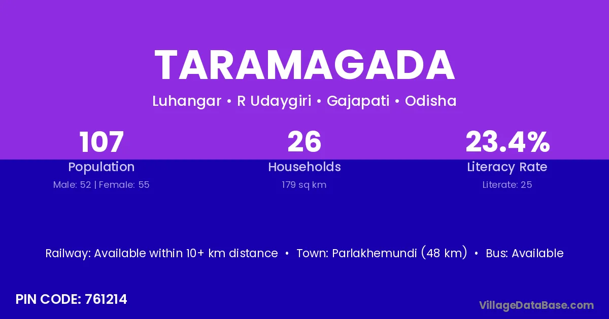 Parlakhemundi (48 km) is the nearest town to Taramagada village for major economic activities and is located approximately 48 km away.