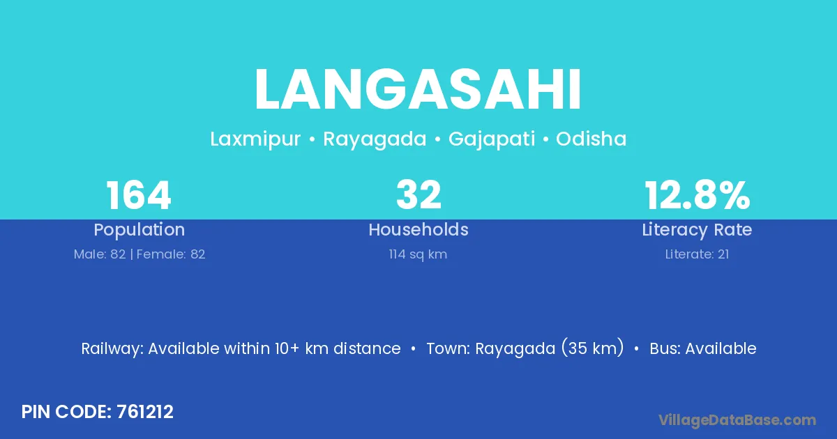 Rayagada (35 km) is the nearest town to Langasahi village for major economic activities and is located approximately 35 km away.