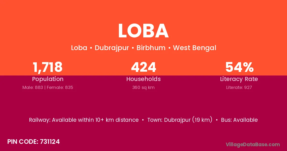 According to Census 2011 information, the village code of Loba village is 761208.