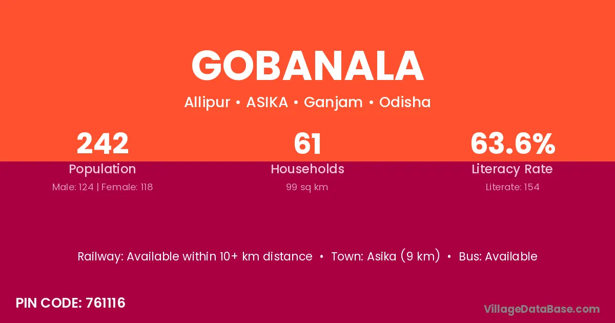 Gobanala village has a total population of 242 people, of which 124 are males and 118 are females.