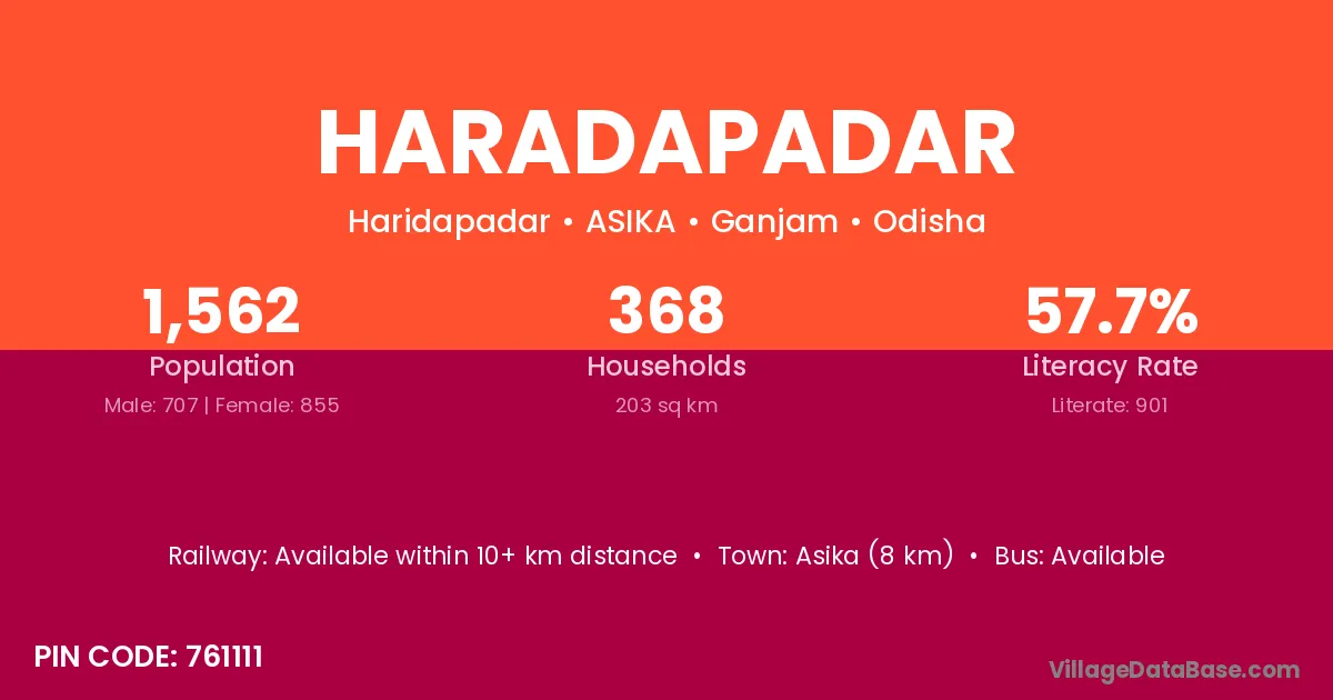 Asika (8 km) is the nearest town to Haradapadar village for major economic activities and is located approximately 8 km away.