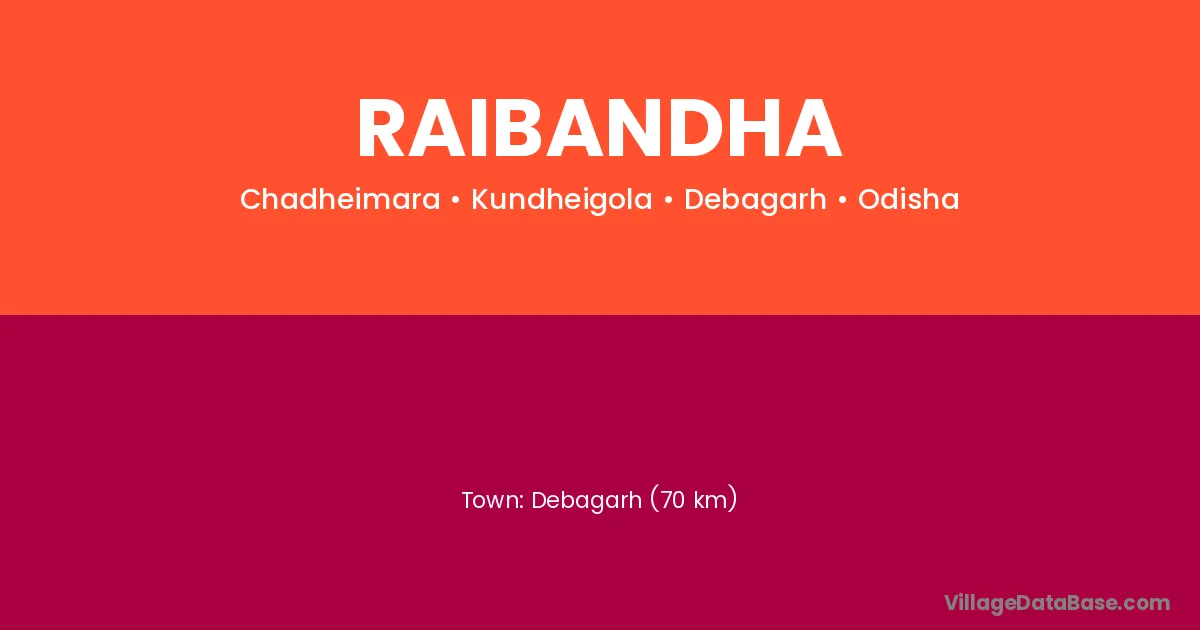 Surada (12 km) is the nearest town to Raibandha village for major economic activities and is located approximately 12 km away.