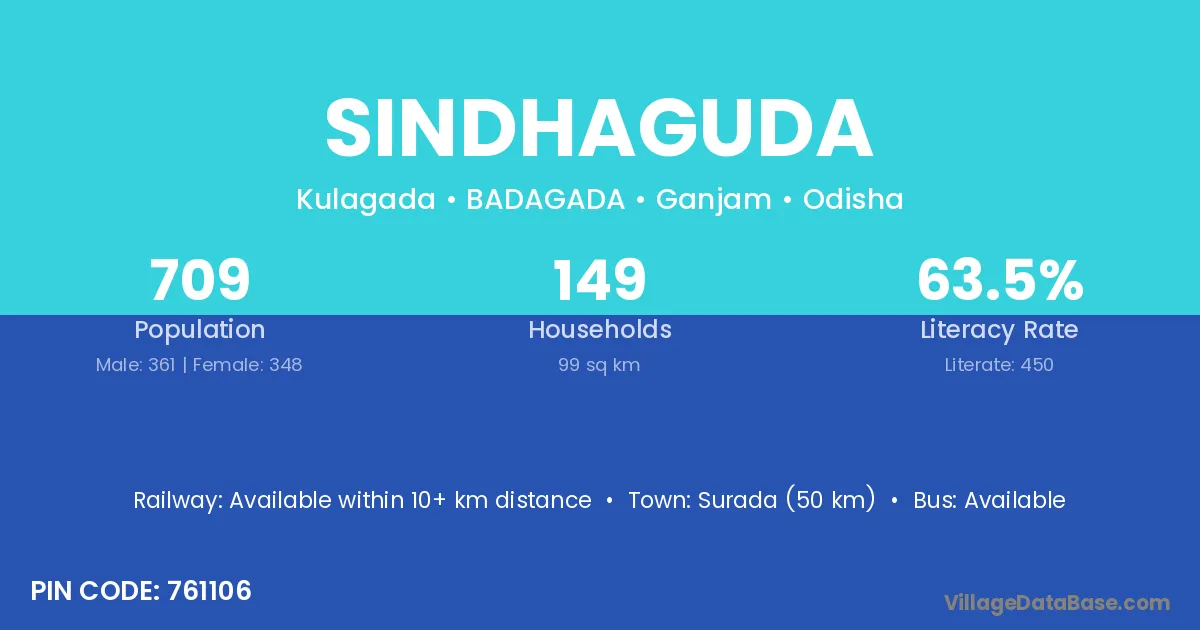 Surada (50 km) is the nearest town to Sindhaguda village for major economic activities and is located approximately 50 km away.