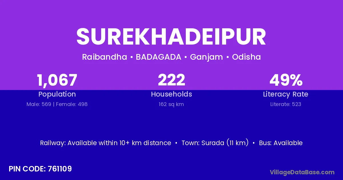 Surada (11 km) is the nearest town to Surekhadeipur village for major economic activities and is located approximately 11 km away.