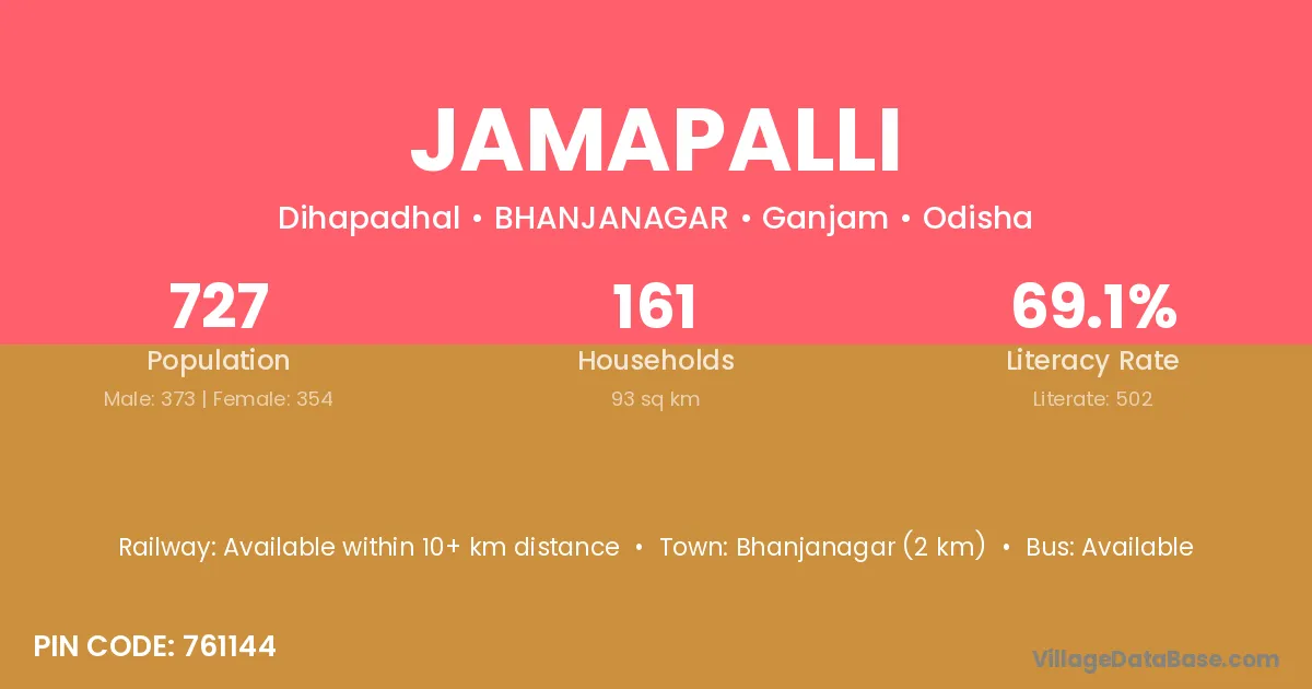 Bhanjanagar (2 km) is the nearest town to Jamapalli village for major economic activities and is located approximately 2 km away.