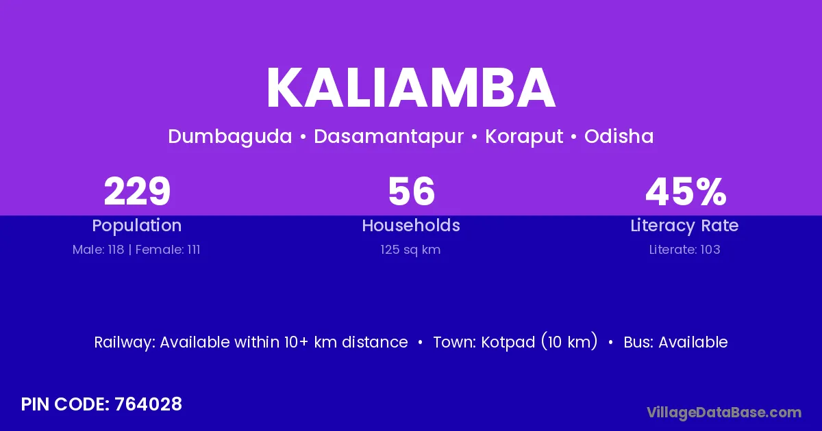 Kaliamba village has a total population of 118 people, of which 58 are males and 60 are females.