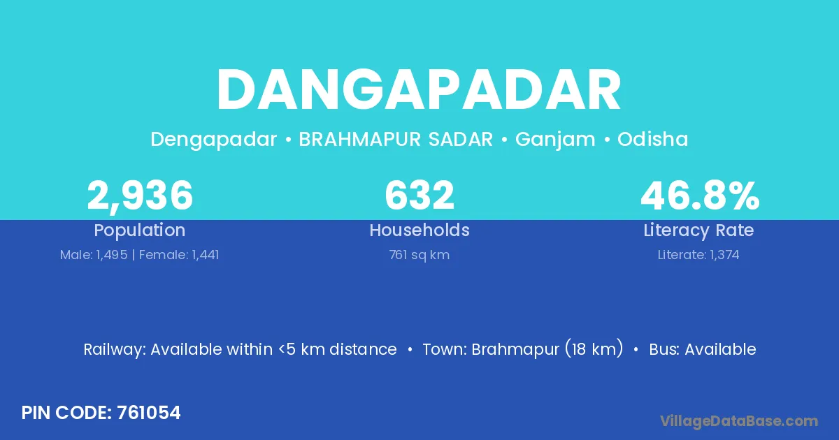 Brahmapur (18 km) is the nearest town to Dangapadar village for major economic activities and is located approximately 18 km away.