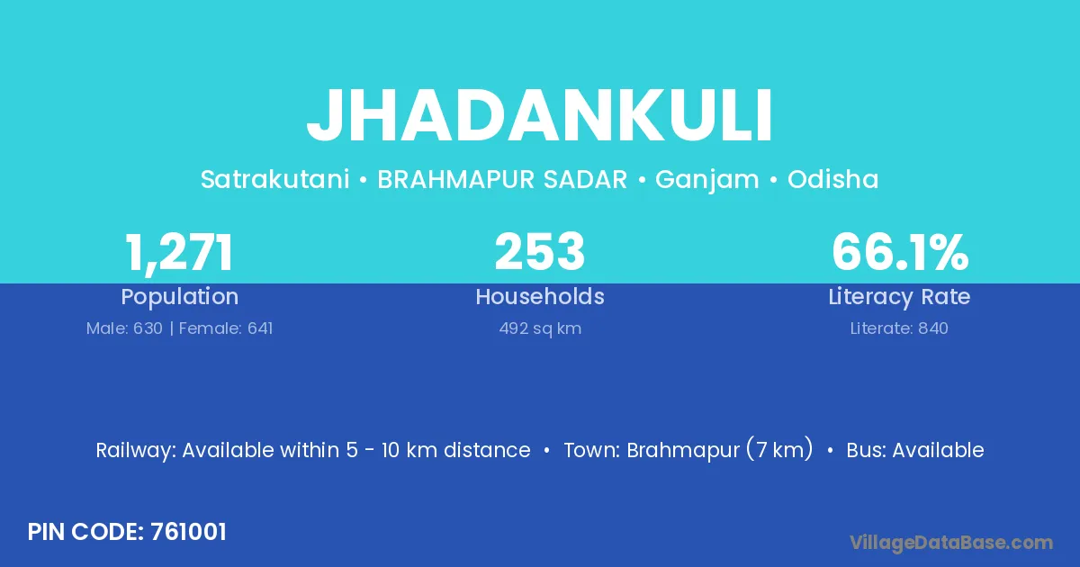 Brahmapur (7 km) is the nearest town to Jhadankuli village for major economic activities and is located approximately 7 km away.