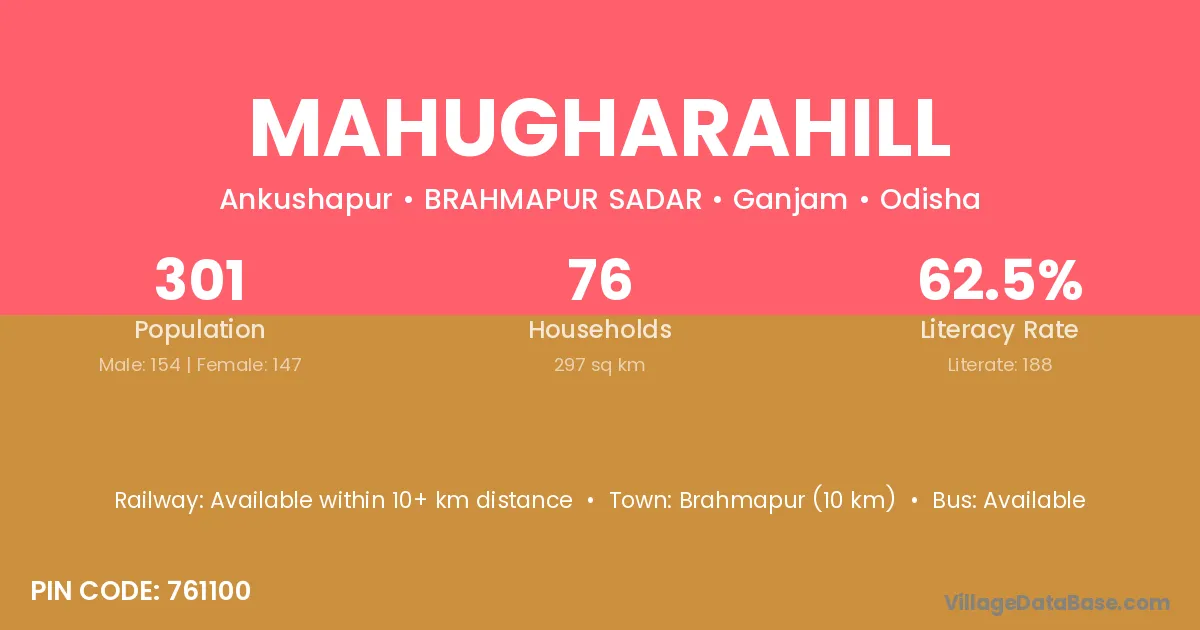 Brahmapur (10 km) is the nearest town to Mahugharahill village for major economic activities and is located approximately 10 km away.