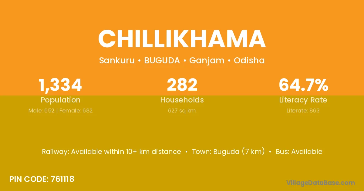 Chillikhama village has a total population of 1,334 people, of which 652 are males and 682 are females.