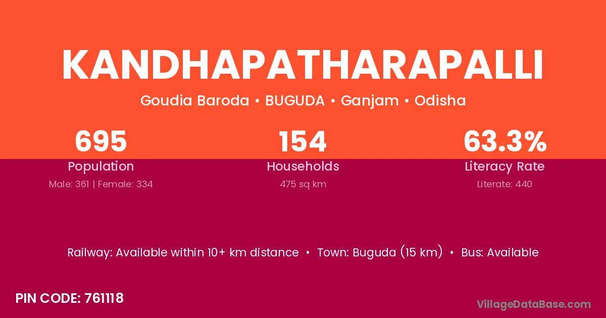 Buguda (15 km) is the nearest town to Kandhapatharapalli village for major economic activities and is located approximately 15 km away.