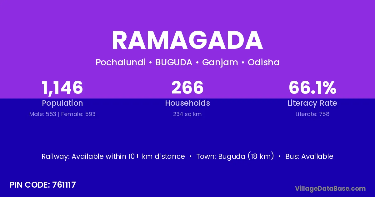 Buguda (18 km) is the nearest town to Ramagada village for major economic activities and is located approximately 18 km away.