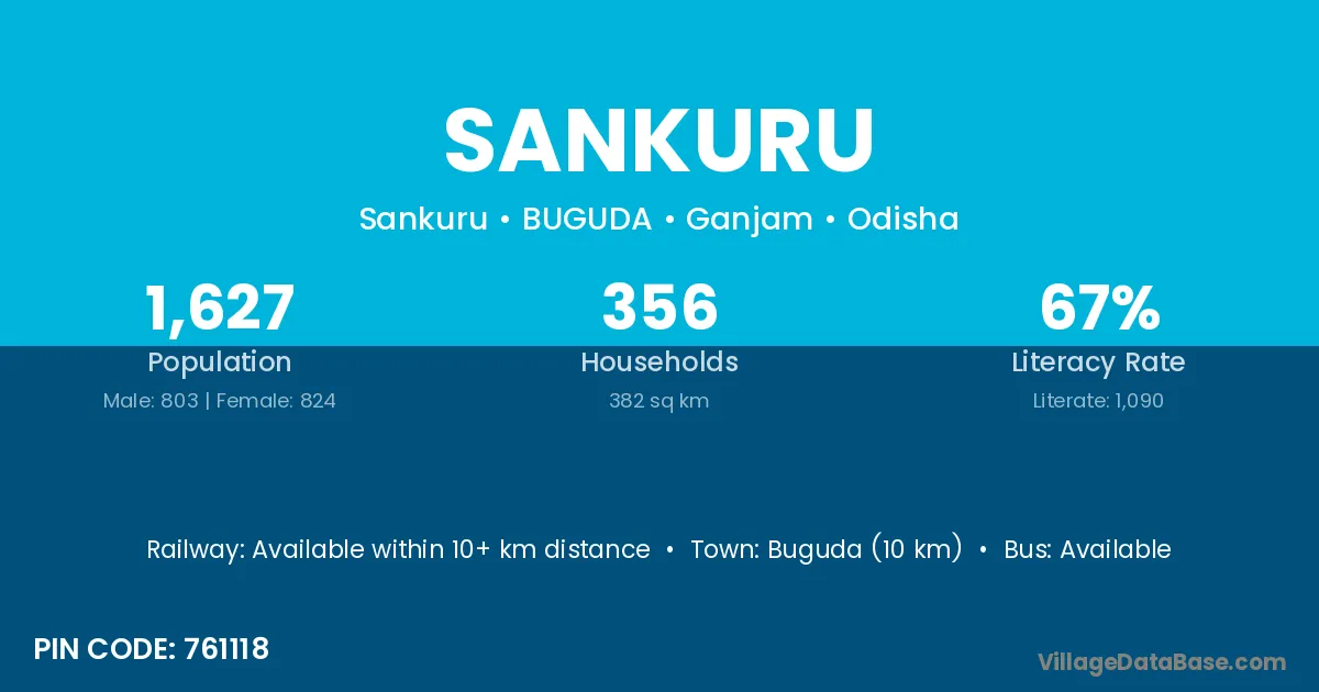 Sankuru village has a total population of 1,627 people, of which 803 are males and 824 are females.