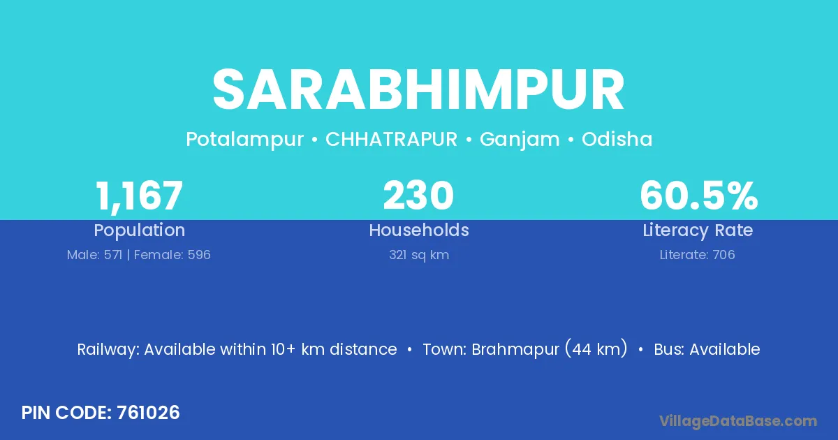 Brahmapur (44 km) is the nearest town to Sarabhimpur village for major economic activities and is located approximately 44 km away.