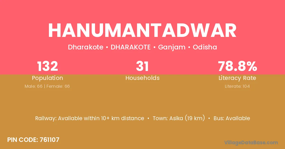 Hanumantadwar village has a total population of 132 people, of which 66 are males and 66 are females.