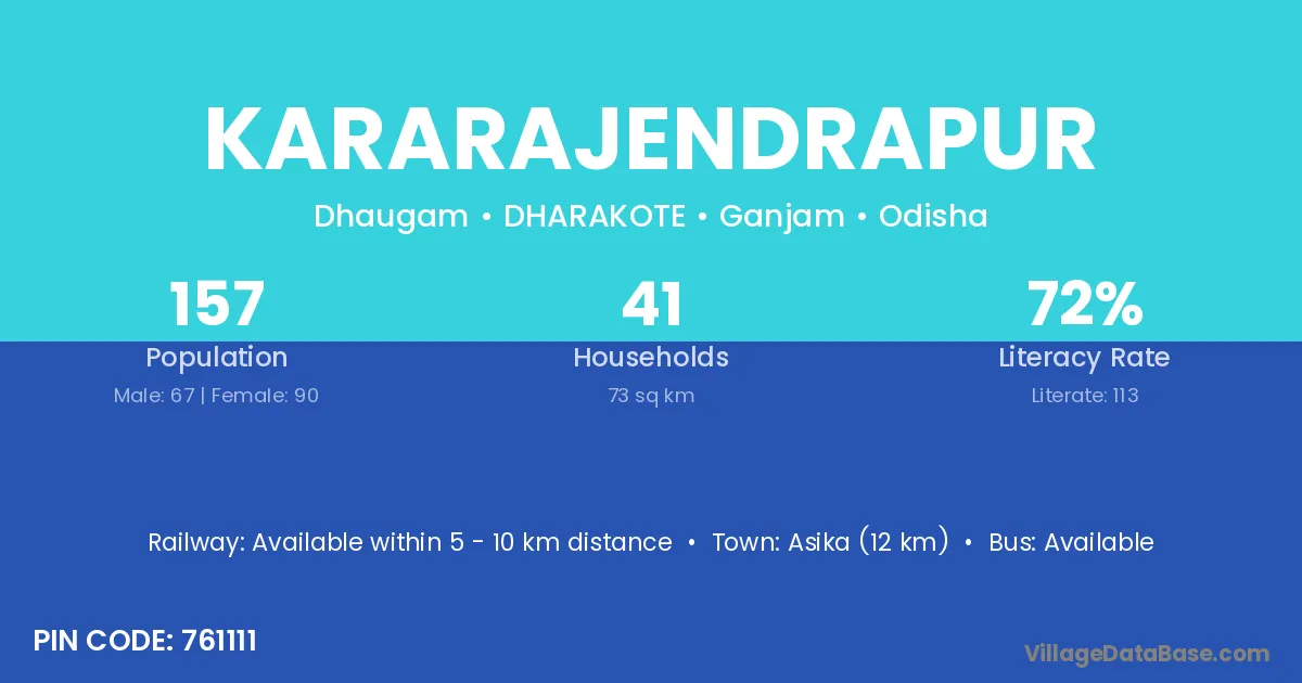 Asika (12 km) is the nearest town to Kararajendrapur village for major economic activities and is located approximately 12 km away.