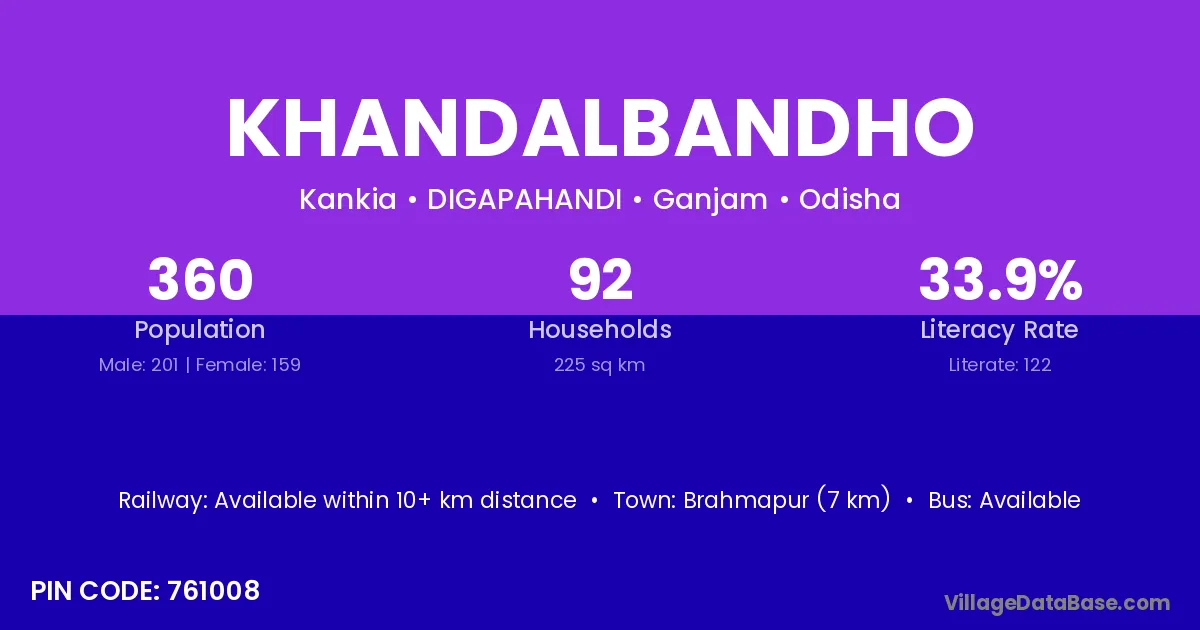 Brahmapur (7 km) is the nearest town to Khandalbandho village for major economic activities and is located approximately 7 km away.