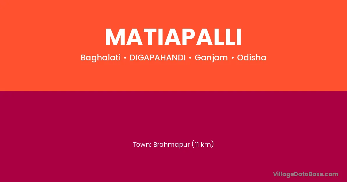 Brahmapur (11 km) is the nearest town to Matiapalli village for major economic activities and is located approximately 11 km away.