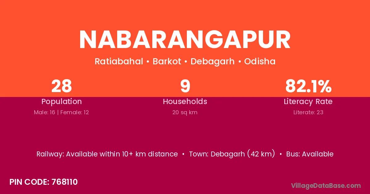 Digapahandi (2 km) is the nearest town to Nabarangapur village for major economic activities and is located approximately 2 km away.