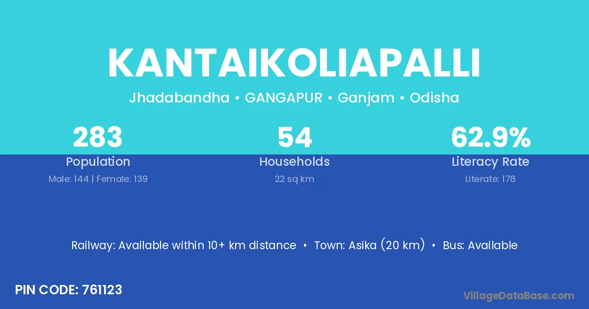 Asika (20 km) is the nearest town to Kantaikoliapalli village for major economic activities and is located approximately 20 km away.