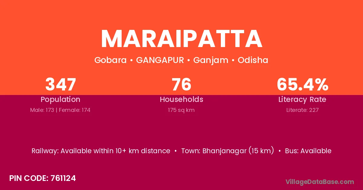 Bhanjanagar (15 km) is the nearest town to Maraipatta village for major economic activities and is located approximately 15 km away.