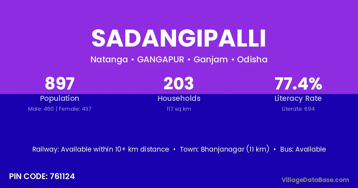 Bhanjanagar (11 km) is the nearest town to Sadangipalli village for major economic activities and is located approximately 11 km away.