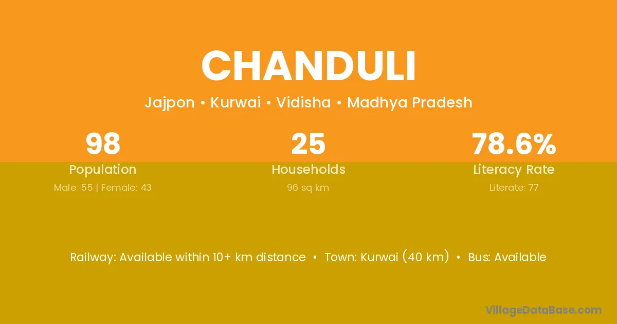 The literacy rate of Chanduli village is 58.62%. Male literacy stands at 66.49% and female literacy at 51.50%.