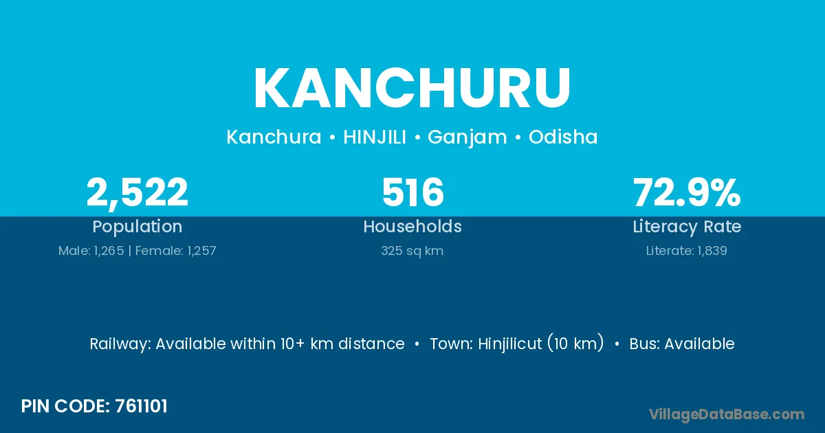 Hinjilicut (10 km) is the nearest town to Kanchuru village for major economic activities and is located approximately 10 km away.