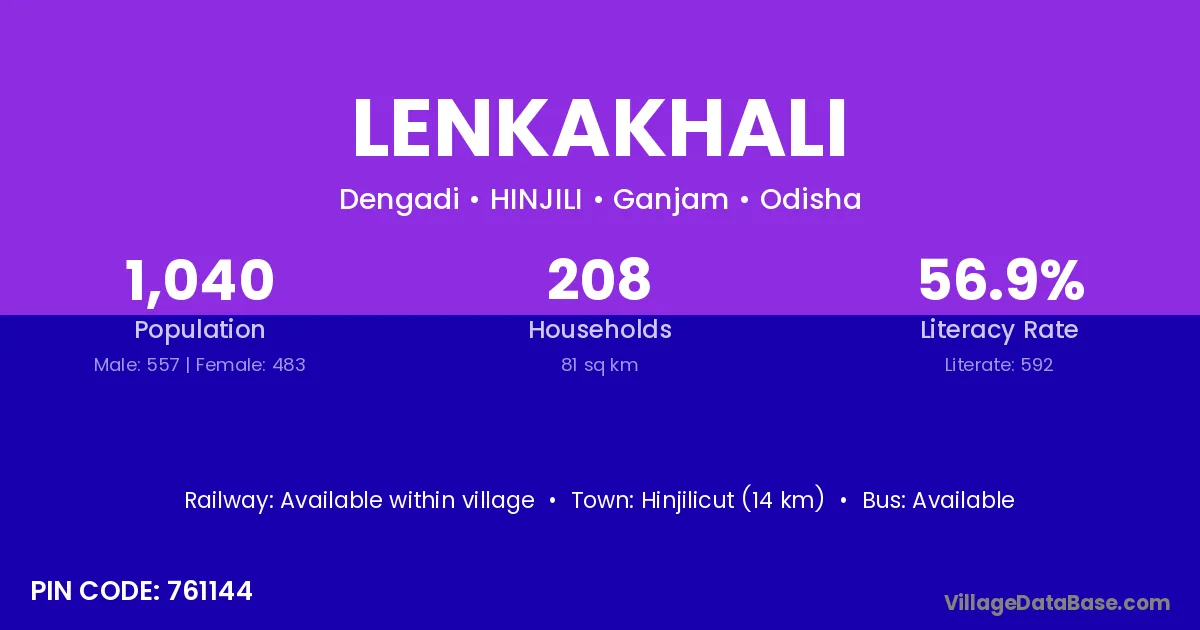 Hinjilicut (14 km) is the nearest town to Lenkakhali village for major economic activities and is located approximately 14 km away.