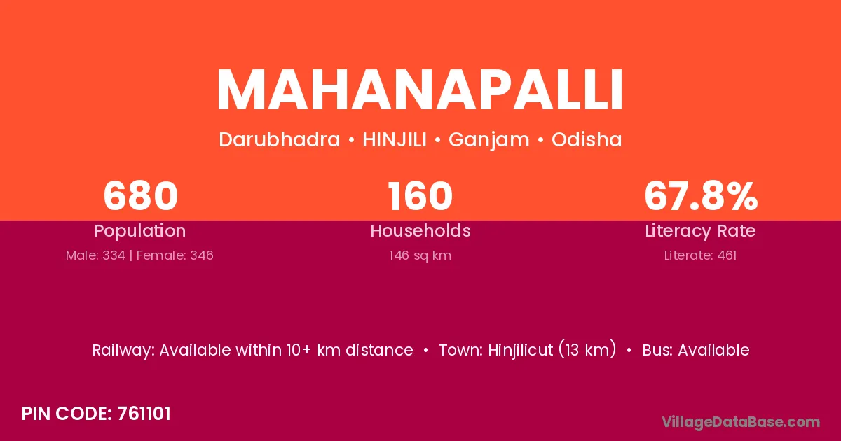 Hinjilicut (13 km) is the nearest town to Mahanapalli village for major economic activities and is located approximately 13 km away.