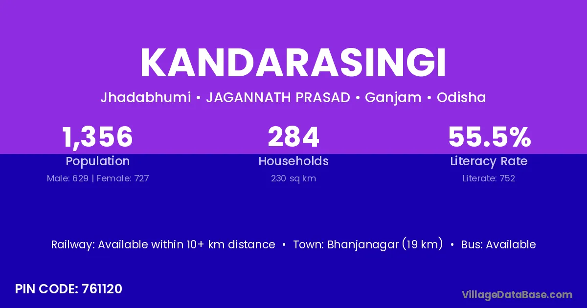 Bhanjanagar (19 km) is the nearest town to Kandarasingi village for major economic activities and is located approximately 19 km away.