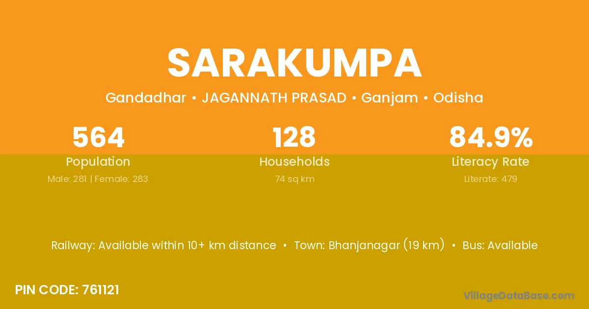 Bhanjanagar (19 km) is the nearest town to Sarakumpa village for major economic activities and is located approximately 19 km away.