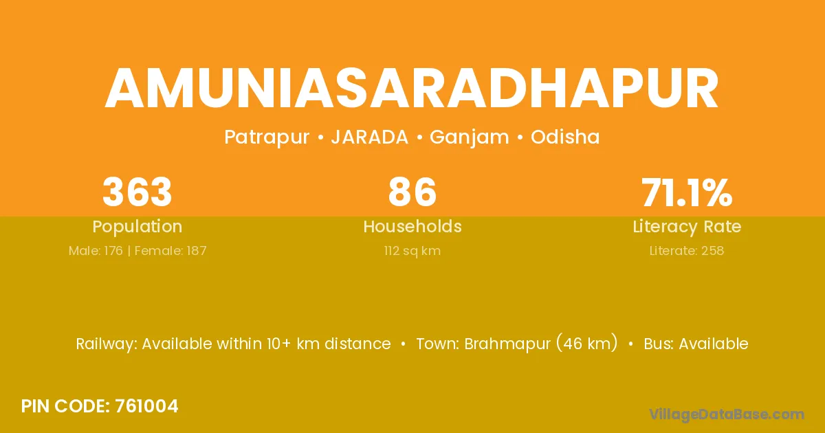 Amuniasaradhapur village is located in the JARADA Tehsil of the Ganjam district in Odisha .