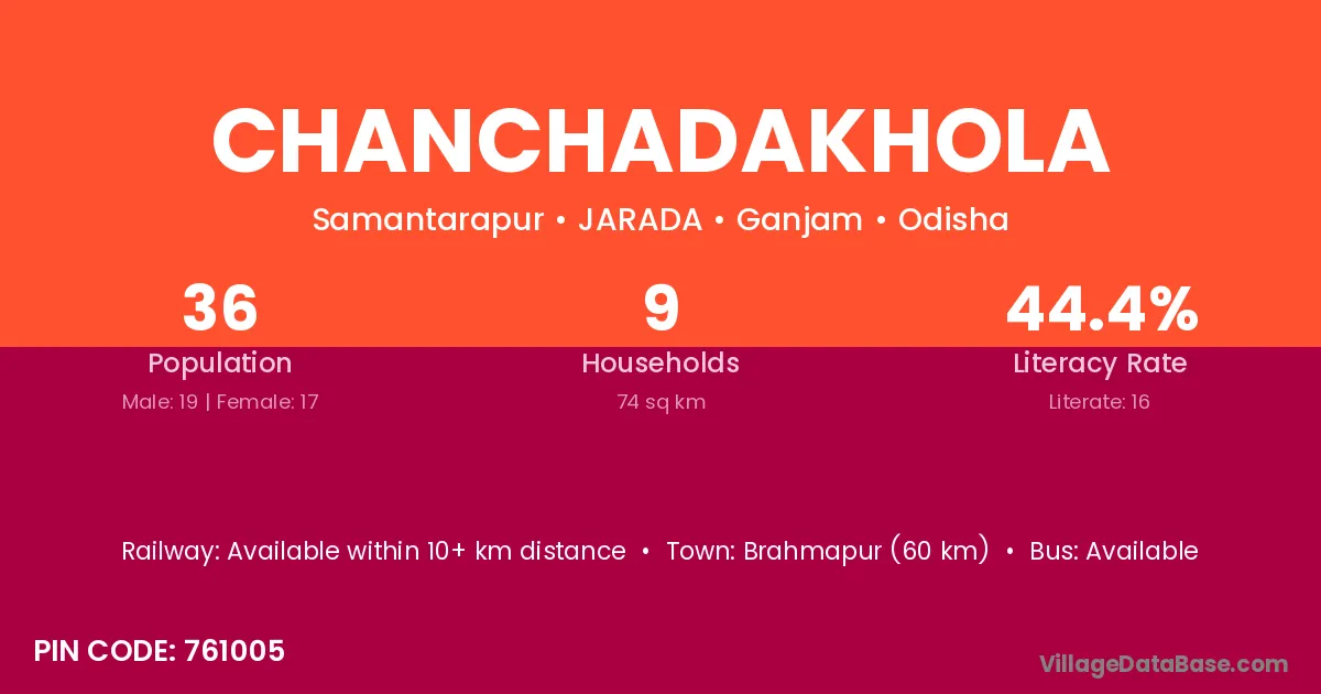 Brahmapur (60 km) is the nearest town to Chanchadakhola village for major economic activities and is located approximately 60 km away.