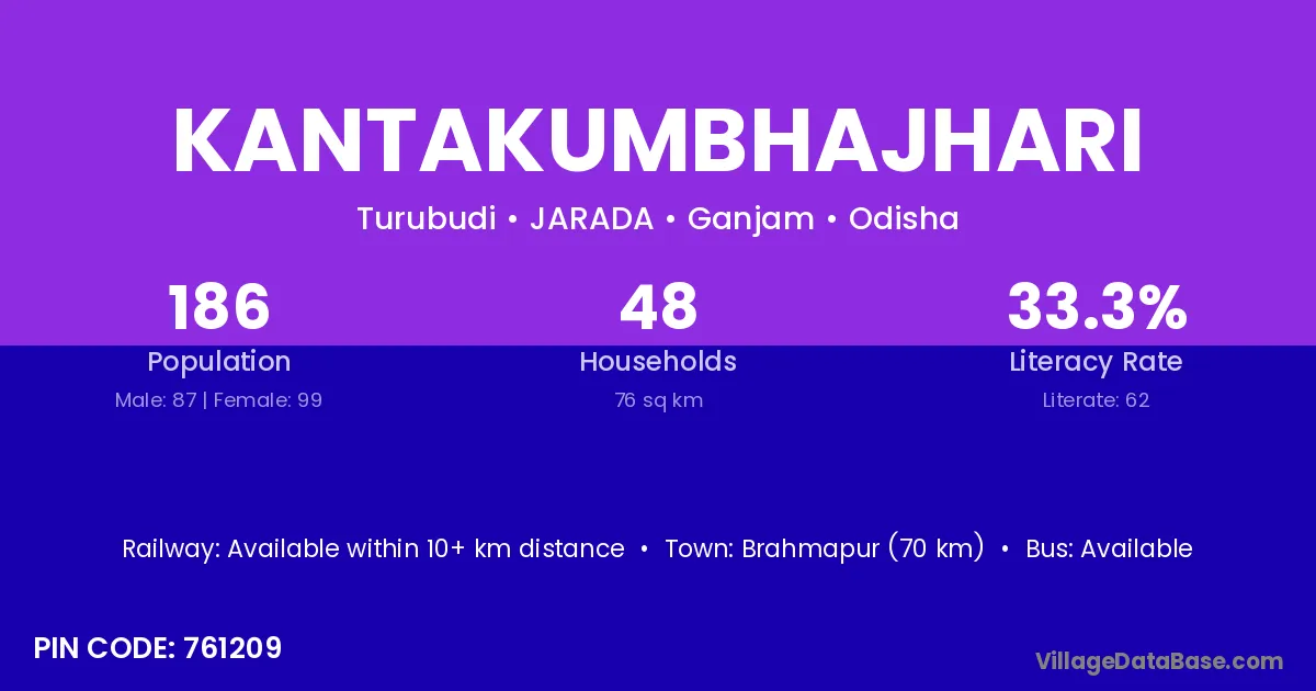 Brahmapur (70 km) is the nearest town to Kantakumbhajhari village for major economic activities and is located approximately 70 km away.