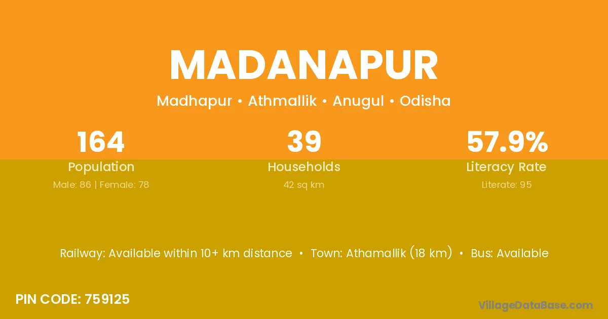 Brahmapur (52 km) is the nearest town to Madanapur village for major economic activities and is located approximately 52 km away.