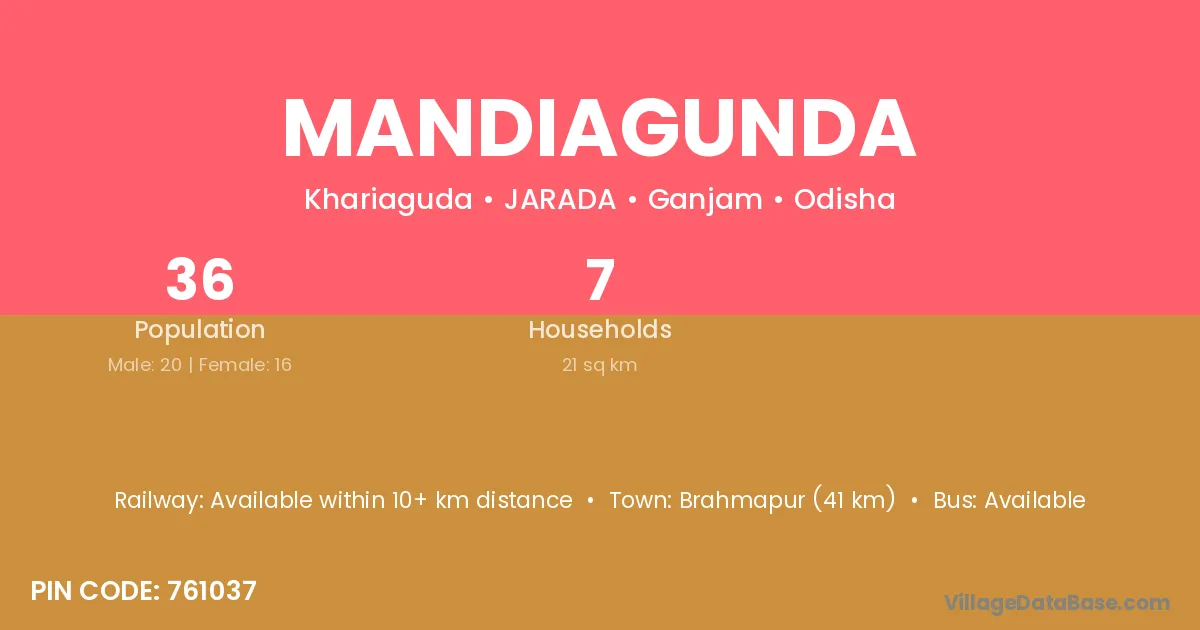 Brahmapur (41 km) is the nearest town to Mandiagunda village for major economic activities and is located approximately 41 km away.