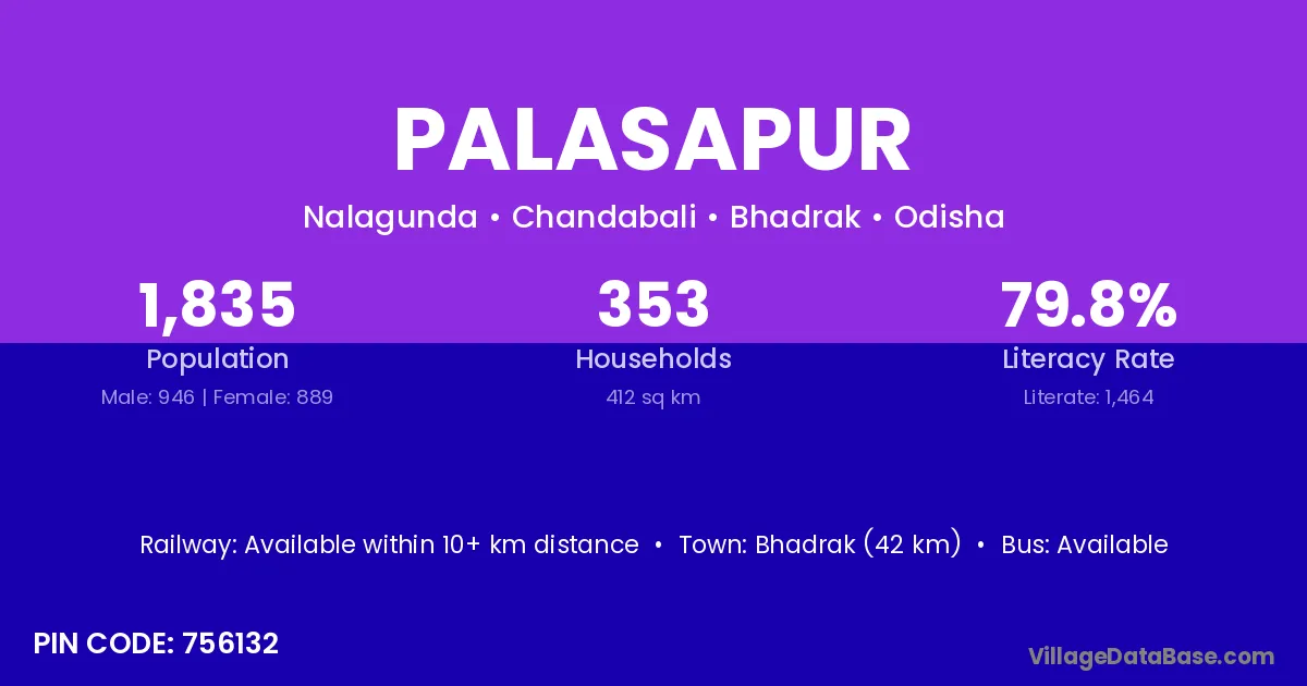 Brahmapur (55 km) is the nearest town to Palasapur village for major economic activities and is located approximately 55 km away.